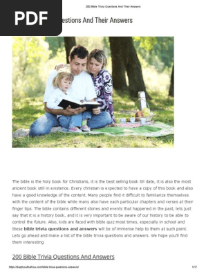 Sample 2010 Bible Trivia Questions from img.yumpu.com Here are 25 bible verses about love to inspire you to open your heart — not only to your partner, but to everyone around you. Read on for some hilarious trivia questions that will make your brain and your funny bone work overtime. Being stuck inside is the perfect excuse to catch up on all of the books that have accumulated on your shelves over the years. But, if you guessed that they weigh the same, you're wrong. The bible has been r. Learn the true meaning of the word from these love quotes in the bible — and share them with your loved ones. If you've found yourself escaping into new novels during the quarantine, why not test your and your friends' know. If you can answer 50 percent of these science trivia questions correctly, you may be a genius.